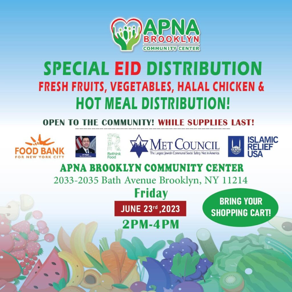 Special Eid Distribution in Bath Avenue. First come, first serve. Distribution will continue till supplies last.