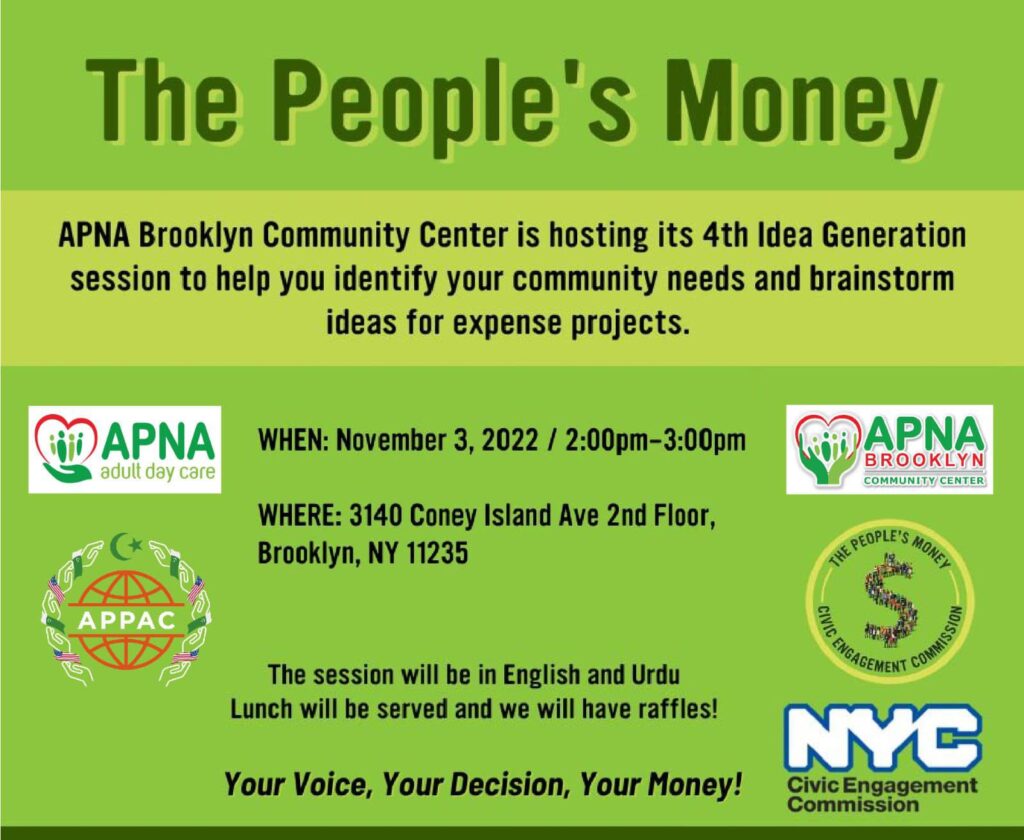 Apna Brooklyn community is hosting its 4th idea generation session to help you identify your community needs